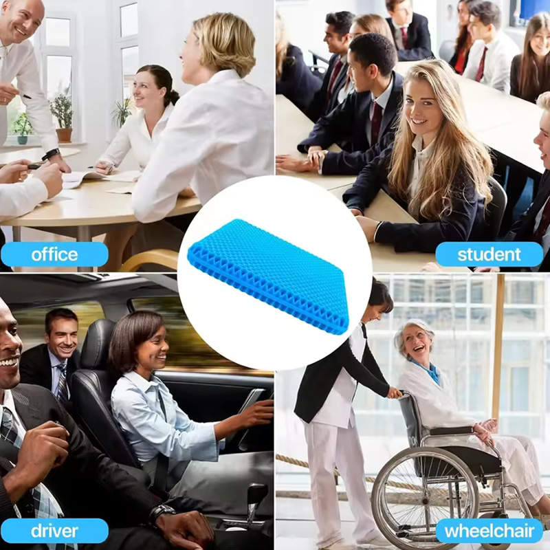 نشیمن طبی ژله ای صندلی، یک راهکار حرفه‌ای برای افرادی است که ساعات زیادی را روی صندلی می‌نشینند. این بالشت با استفاده از ژل خنک‌کننده و طراحی ارگونومیک، فشار وارد شده به نشیمنگاه و ستون فقرات را کاهش داده و از دردهای مزمن ناحیه کمر و لگن جلوگیری می‌کند.